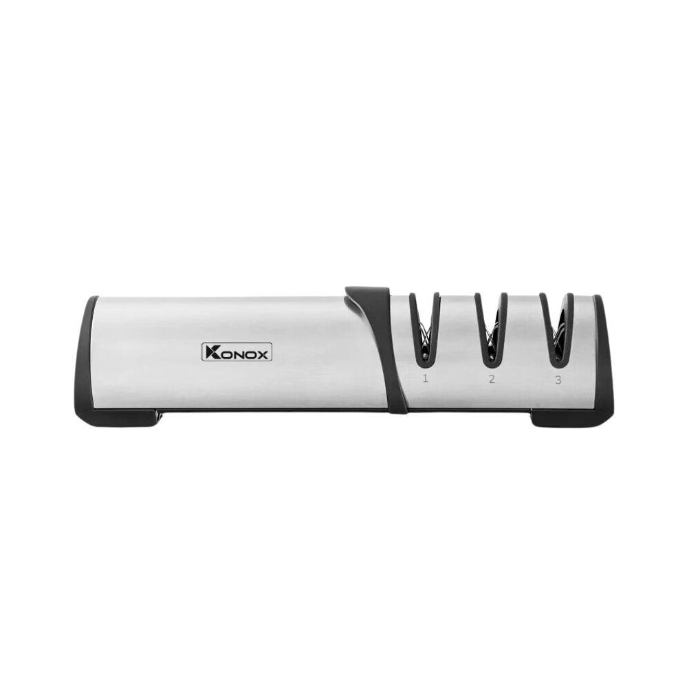 Dụng cụ này được thiết kế đặc biệt để chăm sóc dòng dao thép Nhật Damascus Konox Eiko, giúp duy trì độ sắc bén vượt trội và hiệu suất tối ưu. Không phải tất cả dụng cụ mài dao đều giống nhau, đặc biệt là đối với dòng dao Damascus sở hữu lõi thép AUS-10 có độ cứng Rockwell lên đến 60. Loại thép bền bỉ này yêu cầu sự chăm sóc tỉ mỉ và chính xác với công cụ chuyên dụng. Dụng cụ mài này giúp bạn dễ dàng bảo dưỡng dao, giữ cho lưỡi dao luôn sắc bén và hoạt động hiệu quả.